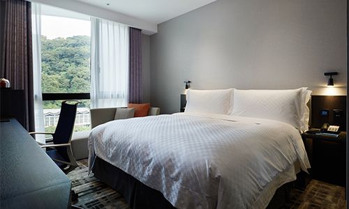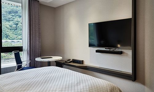 The extra spacious interior offers additional enjoyment. Guests are able to appreciate the beauty of Jiantan Mountain through the French window or from the independent outdoor balcony, indulging in a moment of happiness.