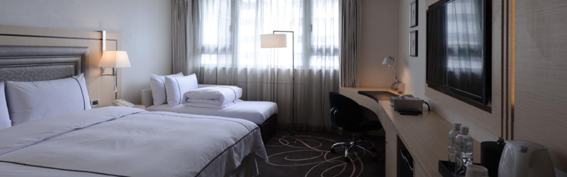 - ィーバッグ、インスタントコーヒー、ミネラルウオーター、ADSL、WIRELESS無線LAN無料利用、有線LANケーブル、中華&西洋バイキング式朝食、ダウンの寝具、姿見ラウンジチェア、セーフティボックス、SONYプラズマテレビ、DVDマイクロコンポーネントシステム目覚まし時計、直通国際電話、独立大理石地面シャワールーム、洗面バス設備、ウォシュレットドライヤー、冷蔵庫、湯沸ポット