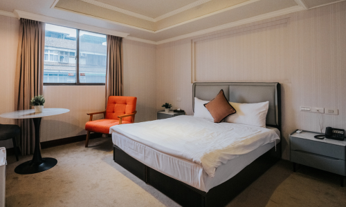 客房面積約26 平方公尺,配有舒適床鋪,提供旅客良好的休憩品質。房內設有空調、可收看有線頻道的平面電視及私人衛浴,滿足基本舒適與便利需求。此房型配置一張床,適合兩位旅客入住。
