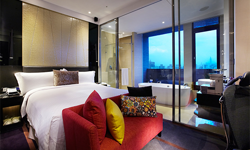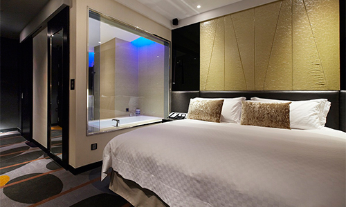 經典房型,浴室穿透臥房,大落地窗面街景,商務休閒最佳選擇